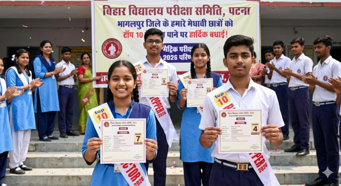 Bhagalpur News: बिहार विद्यालय परीक्षा समिति (BSEB) द्वारा आयोजित मैट्रिक वार्षिक परीक्षा 2026 के परिणाम घोषित कर दिए गए हैं। इस वर्ष भी भागलपुर जिले के छात्रों ने अपनी प्रतिभा का लोहा मनवाते हुए राज्य स्तर पर जिला का नाम रोशन किया है। आधिकारिक आंकड़ों के अनुसार, भागलपुर जिले के कुल 4 छात्र-छात्राओं ने बिहार के ‘टॉप 10’ (State Merit List) में अपनी जगह सुरक्षित की है।
