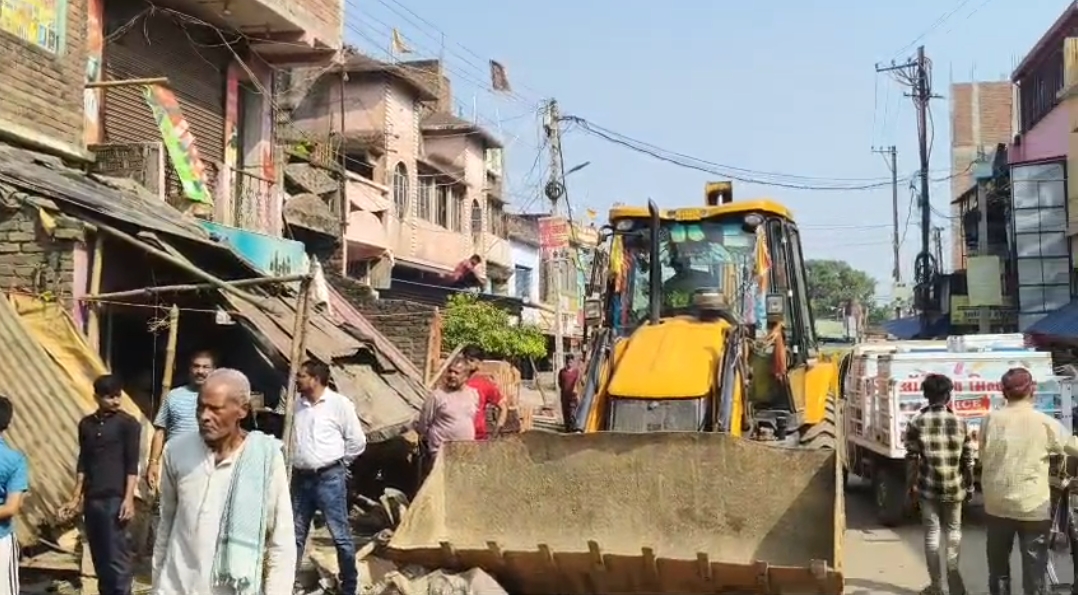 पीरपैंती में अतिक्रमण पर चला बुलडोजर, वर्षों पुरानी जाम समस्या से मिलेगी बड़ी राहत