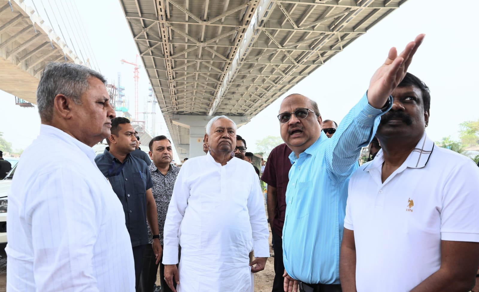 इस निरीक्षण के दौरान मुख्यमंत्री के साथ जल संसाधन एवं संसदीय कार्य मंत्री विजय कुमार चौधरी, मुख्यमंत्री के प्रधान सचिव डॉ. एस. सिद्धार्थ, पथ निर्माण विभाग के अपर मुख्य सचिव मिहिर कुमार सिंह, मुख्यमंत्री के सचिव कुमार रवि, पथ निर्माण विभाग के सचिव डॉ. संदीप कुमार आर. पुडकलकट्टी, पटना के जिलाधिकारी डॉ. त्यागराजन एस.एम., वैशाली की जिलाधिकारी वर्षा सिंह, पटना के वरीय पुलिस अधीक्षक अवकाश कुमार और वैशाली के पुलिस अधीक्षक ललित मोहन शर्मा समेत अन्य वरीय अधिकारी उपस्थित थे।