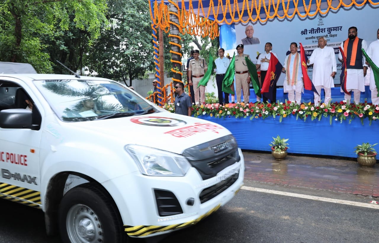 पटना: मुख्यमंत्री नीतीश कुमार ने शनिवार को 01 अणे मार्ग से पुलिस उपाधीक्षक यातायात एवं यातायात थानों के लिए आवंटित 71 नए पुलिस वाहनों का लोकार्पण किया और उन्हें हरी झंडी दिखाकर रवाना किया। इस पहल का उद्देश्य बिहार में यातायात नियंत्रण, सड़क सुरक्षा और कानून व्यवस्था को और अधिक प्रभावशाली बनाना है।