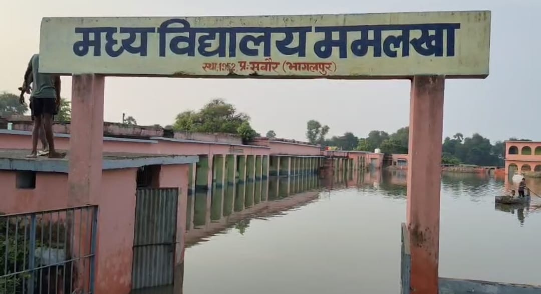 भागलपुर: गंगा के बढ़ते जलस्तर ने भागलपुर जिले के ममलखा गांव में तबाही मचा दी है। देर रात गांव के पास स्थित बांध टूटने से बाढ़ का पानी तेज़ी से बस्ती में घुस गया। सबसे अधिक प्रभावित मध्य विद्यालय ममलखा हुआ, जहां पानी मुख्य गेट से होते हुए कक्षाओं तक पहुंच गया।
