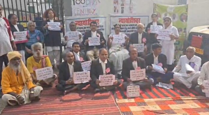 बुधवार को कलेक्ट्रेट कार्यालय के पीछे अधिवक्ताओं के धरना प्रदर्शन के 100 दिन पूरे हो गए। इस मौके पर बड़ी संख्या में वकील और सामाजिक संगठनों के लोग जुटे और अपनी आवाज बुलंद की।