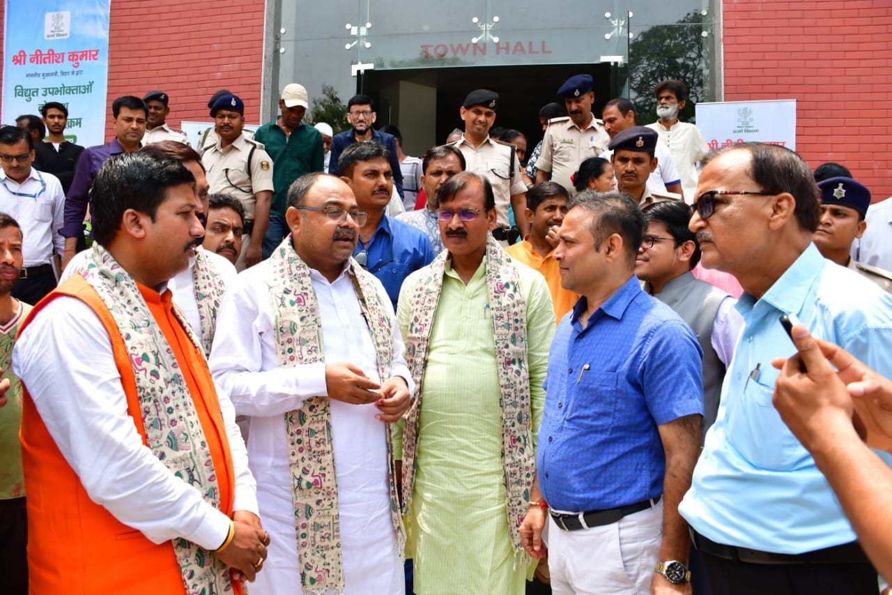 भागलपुर: बिहार के सभी घरेलू उपभोक्ताओं को प्रतिमाह 125 यूनिट बिजली निःशुल्क उपलब्ध कराने के उद्देश्य से मुख्यमंत्री विद्युत सहायता योजना के तहत उपभोक्ताओं से संवाद कार्यक्रम का आयोजन भागलपुर के टाउन हॉल में किया गया। कार्यक्रम का उद्घाटन श्रम संसाधन विभाग के मंत्री एवं भागलपुर जिले के प्रभारी मंत्री श्री संतोष कुमार सिंह ने दीप प्रज्वलित कर किया। इस अवसर पर जिला परिषद अध्यक्ष मिथुन यादव, उप विकास आयुक्त प्रदीप कुमार सिंह सहित अन्य पदाधिकारी उपस्थित रहे।