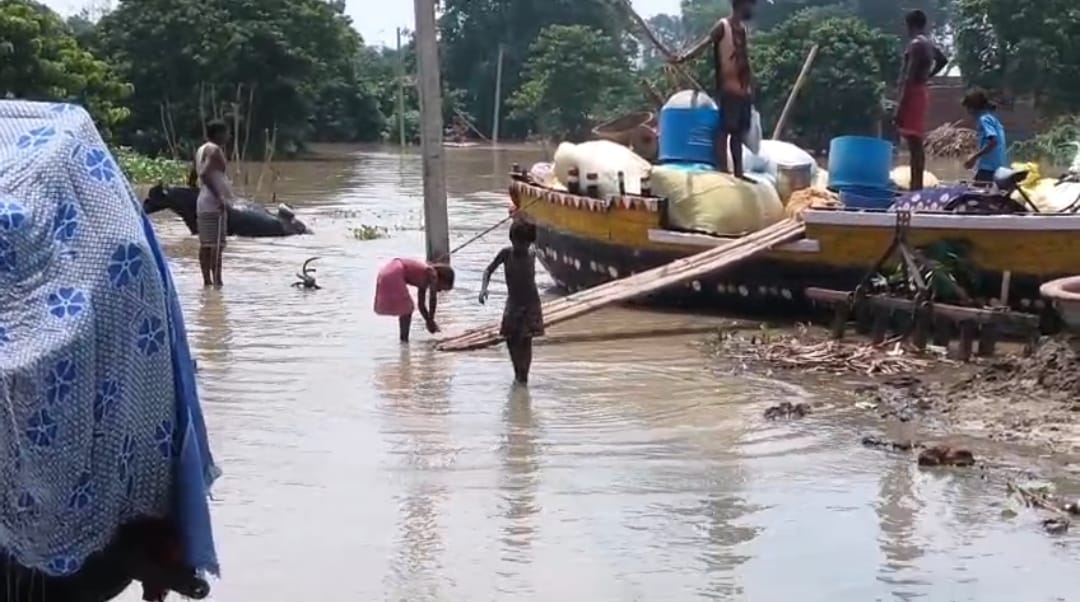 नाथनगर प्रखंड के रसीदपुर पंचायत अंतर्गत रत्तीपुर बैरिया गांव की स्थिति सबसे गंभीर है। गांव पूरी तरह से गंगा के पानी से घिरकर टापू बन चुका है और शहर से इसका संपर्क पूरी तरह टूट गया है।