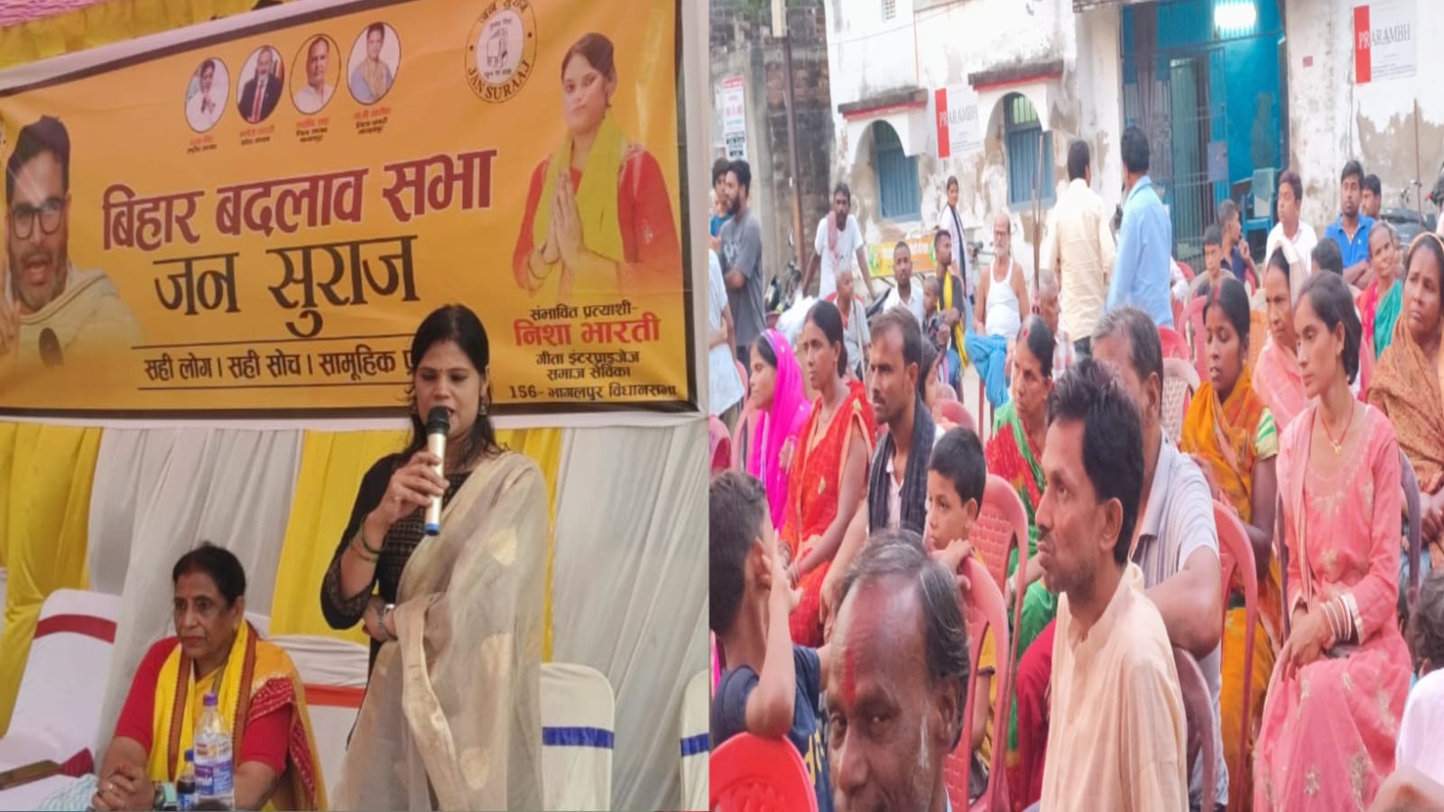 सभा को संबोधित करते हुए निशा भारती ने कहा कि जनता आज भ्रष्ट राजनीति और कमजोर प्रशासन से परेशान है। आम लोगों की समस्याओं का समाधान करने के बजाय सरकारी तंत्र केवल दिखावा कर रहा है। जनसुराज पार्टी का उद्देश्य है कि बिहार के विकास और नव निर्माण में जनता की भागीदारी सुनिश्चित हो। उन्होंने कहा कि आने वाला समय बदलाव का है और इस बदलाव में भागलपुर की भूमिका अहम होगी।