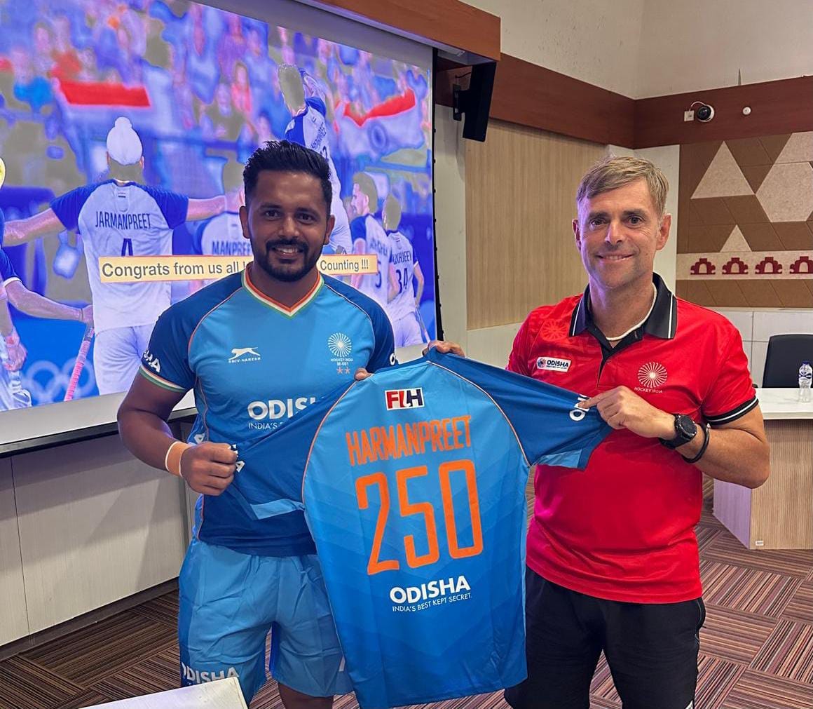 मैच से पहले टीम के मुख्य कोच क्रेग फुल्टन ने उन्हें 250वां जर्सी भेंट किया। इस भावुक पल पर हरमनप्रीत ने कहा, “यह मेरे लिए बेहद खास और यादगार अवसर है। मुझे अपने करियर के दौरान हॉकी प्रशंसकों से जो प्यार और समर्थन मिला है, उसके लिए मैं आभारी हूं। लगातार दो ओलंपिक पदक जीतना और अपनी बेटी को मैच में मुझे चीयर करते देखना मेरी जिंदगी के सबसे खास लम्हों में से हैं। मैं भारतीय हॉकी की विरासत को आगे बढ़ाने के लिए हमेशा प्रयासरत रहूँगा।”