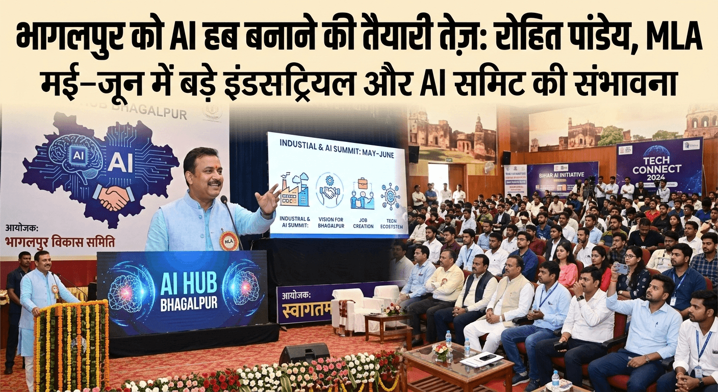 Bhagalpur News: होली के बाद मई–जून के दौरान भागलपुर में एक बड़े इंडस्ट्रियल और आर्टिफिशियल इंटेलिजेंस (एआई) समिट के आयोजन की संभावना जताई जा रही है। यह जानकारी नगर विधायक रोहित पांडेय ने दी। उन्होंने कहा कि दिल्ली में आयोजित एआई समिट के बाद अब भागलपुर को एआई हब के रूप में विकसित करने की दिशा में गंभीर पहल की जाएगी।