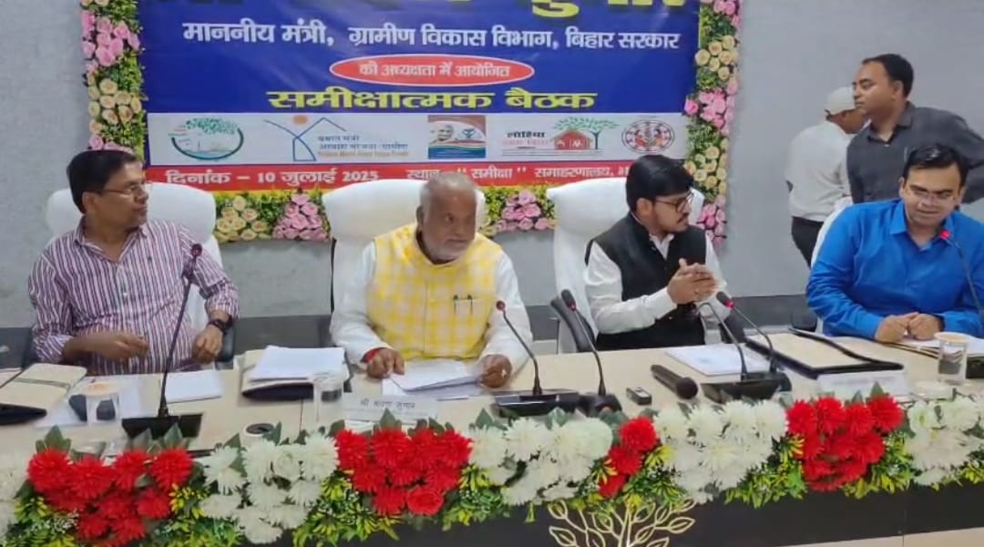 भागलपुर: बिहार सरकार के ग्रामीण विकास मंत्री श्रवण कुमार ने गुरुवार र को भागलपुर के समीक्षा भवन में ग्रामीण विकास विभाग की जिला स्तरीय समीक्षा बैठक की। बैठक की शुरुआत दीप प्रज्वलन के साथ हुई, जिसमें उप विकास आयुक्त प्रदीप कुमार सिंह, विभागीय वरीय अधिकारी और विभिन्न योजनाओं के कार्यपालक पदाधिकारी उपस्थित रहे।