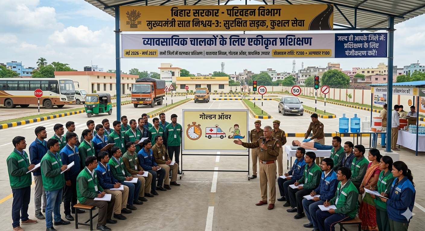Patna News: बिहार सरकार ने राज्य में सड़क दुर्घटनाओं पर अंकुश लगाने और यातायात व्यवस्था को अधिक सुरक्षित बनाने के लिए एक बड़ा कदम उठाया है। परिवहन विभाग ने मुख्यमंत्री सात निश्चय-3 योजना के अंतर्गत ‘सुरक्षित सड़क, कुशल सेवा और बेहतर जीवन-यापन’ पहल की शुरुआत की है। इस योजना के तहत राज्य के सभी जिलों में अगले 11 महीनों (मई से मार्च 2027) तक व्यावसायिक चालकों के लिए एकीकृत प्रशिक्षण कार्यक्रम चलाया जाएगा।