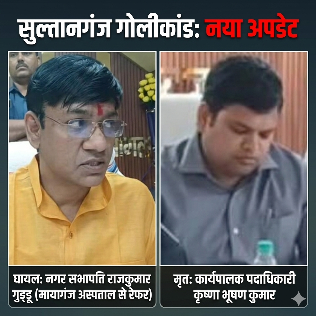 गौरतलब है कि अपराधियों ने दुस्साहस का परिचय देते हुए दिनदहाड़े सुल्तानगंज नगर परिषद कार्यालय में घुसकर ताबड़तोड़ फायरिंग की थी। इस हमले में कार्यपालक पदाधिकारी (EO) कृष्णा भूषण कुमार को निशाना बनाया गया, जिनकी घटनास्थल पर ही मौत हो गई। वहीं, नगर सभापति राजकुमार गुड्डू के सिर में गोली लगी, जिससे वे गंभीर रूप से घायल हो गए।