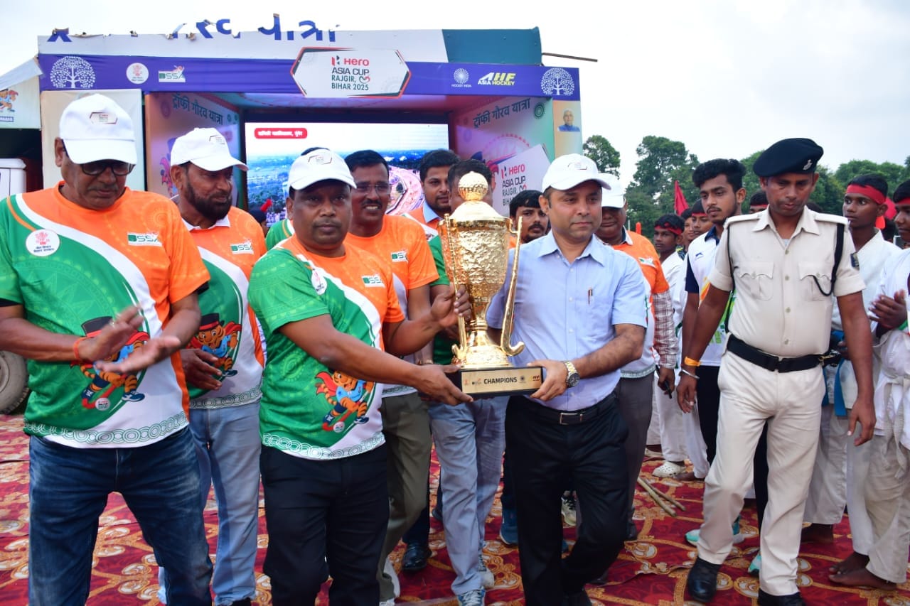 भागलपुर: हीरो एशिया कप 2025 हॉकी टूर्नामेंट का रोमांच अब चरम पर है। पहली बार बिहार की धरती इस प्रतिष्ठित एशिया पुरुष हॉकी प्रतियोगिता की मेजबानी कर रही है, जिसका आयोजन 29 अगस्त से 7 सितंबर 2025 तक राजगीर में होगा। इस ऐतिहासिक अवसर का हिस्सा बनाने के लिए विजेता को मिलने वाली ट्रॉफी गौरव यात्रा के तहत यह ट्रॉफी बिहार के अलग-अलग जिलों में खेल प्रेमियों को दिखाई जा रही है। इसी क्रम में रविवार को यह ट्रॉफी भागलपुर पहुँची, जहाँ इसका बैंड-बाजे और खेल प्रेमियों के जोश के साथ शानदार स्वागत हुआ।