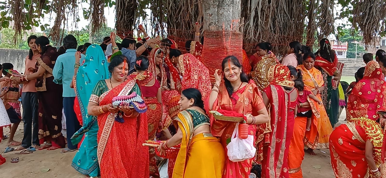 सुहागिनों ने व्रत रखकर वट वृक्ष के चारों ओर सूत का धागा लपेटा, फल-फूल, मिठाई और पूजन सामग्री अर्पित कर अपने पति की लंबी उम्र की कामना की। पूरे इलाके में भक्ति-भाव, लोकगीतों और पूजा की गूंज सुनाई दी।