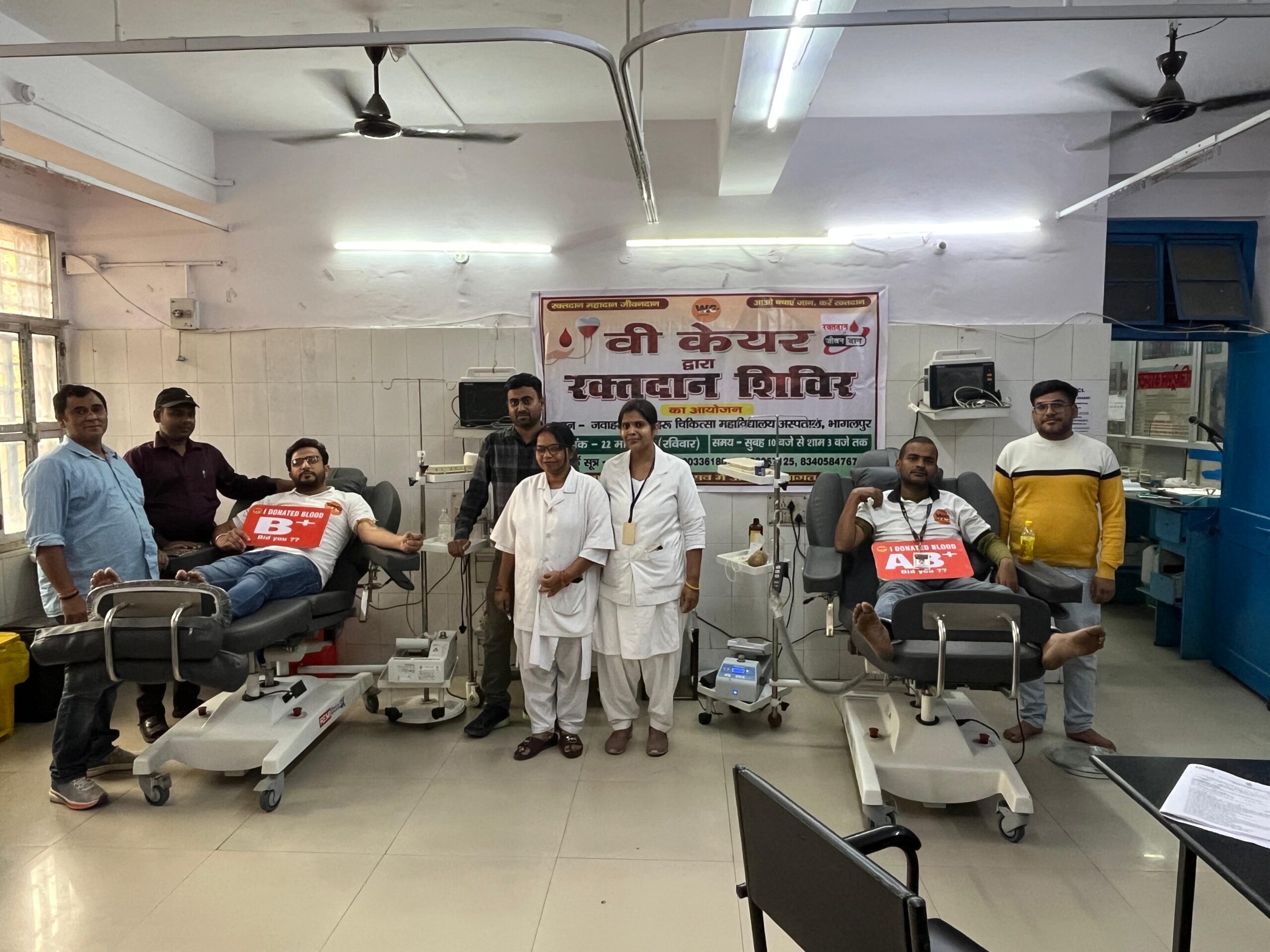Bhagalpur News: सामाजिक संस्था “वी केयर” द्वारा जवाहरलाल नेहरू मेडिकल कॉलेज हॉस्पिटल (जेएलएनएमसीएच) में आयोजित रक्तदान शिविर का सफल आयोजन किया गया। इस पुनीत अवसर पर कुल 78 रक्तवीरों ने स्वेच्छा से रक्तदान कर मानवता और सामाजिक जिम्मेदारी का उत्कृष्ट उदाहरण प्रस्तुत किया।