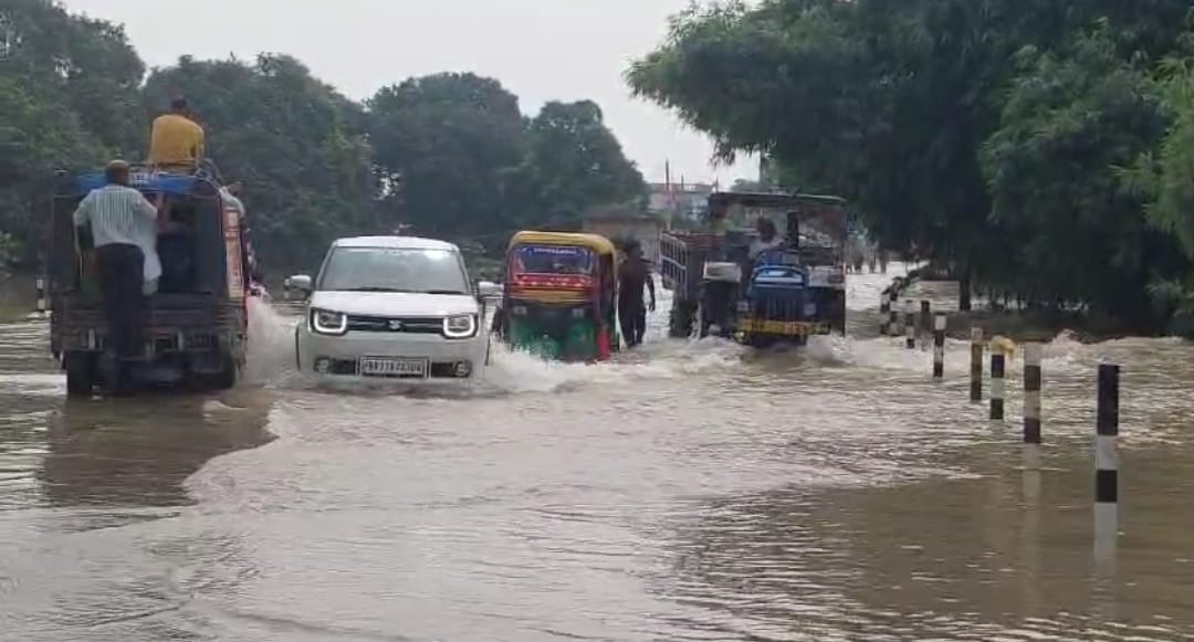 भागलपुर: बिहार का बाढ़ से पुराना नाता एक बार फिर सामने आ गया है। गंगा के लगातार बढ़ते जलस्तर ने भागलपुर में तबाही मचा दी है। सुल्तानगंज प्रखंड पूरी तरह जलमग्न हो चुका है। हालात इतने गंभीर हैं कि एनएच-80 भी गंगा के पानी में डूब गया है। अकबरनगर के पास सड़क पर करीब 2 फीट पानी बह रहा है, जिससे यातायात बुरी तरह प्रभावित हुआ है।