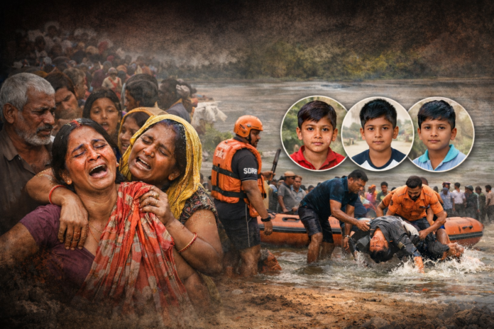 नहाने के दौरान फिसला पैर, गहरे पानी में समा गए तीन मासूम; एसडीआरएफ और गोताखोरों की मदद से निकाले गए शव, पूरे इलाके में शोक की लहर